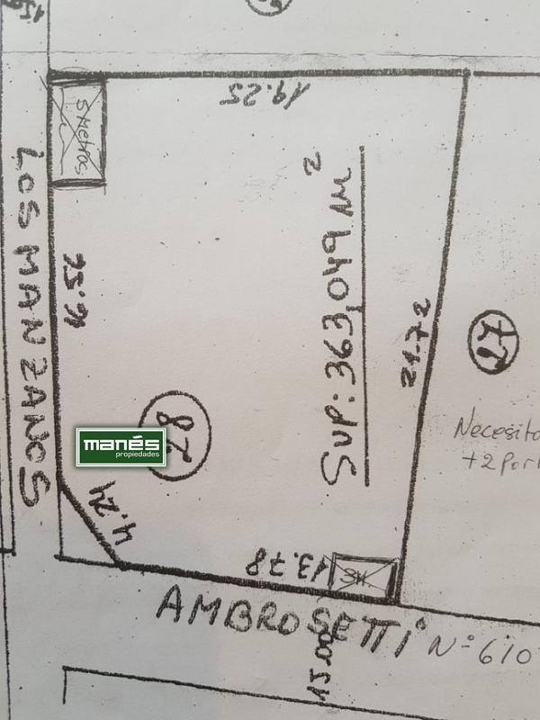 Lote de 360 metros, Ambrosetti esquina los Manzanos. a 300 metros de Palmas Del Pilar.